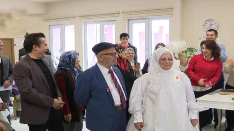 Kaçarak evlenen Ayşe ve Mehmet Yeni çifti, 62 yıl sonra Tuzla Belediyesi Yaşlılar Merkezi’nde gelinlik ve damatlık giyerek nikah tazeledi.