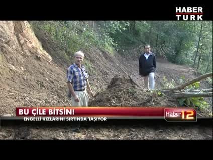 Baba ilerleyen yaşına rağmen kızlarını sırtında taşımak zorunda. Çünkü mahallenin yol sorunu var. Aile perişan ve artık bu çile bitsin diyor!