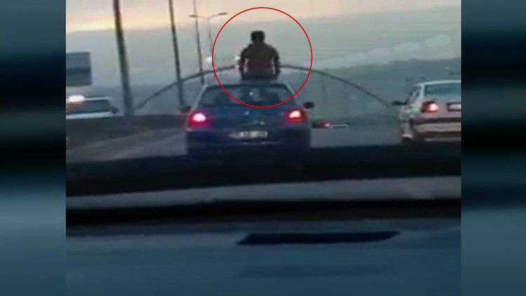 Ankara'da trafikte seyir halinde bulunan araçtaki yolcu hem kendi canını hem trafikte seyredenlerin canını tehlikeye attı.