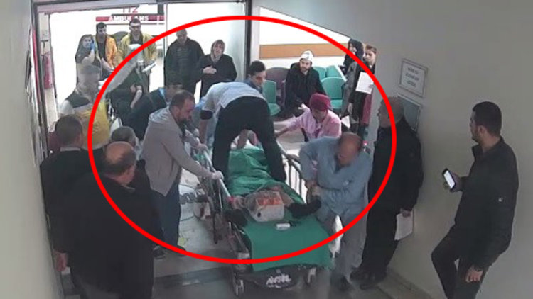 Ameliyathaneye götürülen kişinin bulunduğu sedyenin üzerine çıkan Acil Tıp Uzmanı Dr. Hüseyin Yenice, yolculuk esnasında kalp masajı yaparak kişiyi hayatta tutmaya çalıştı. Bu anlar ise güvenlik kameralarına saniye saniye yansıdı.