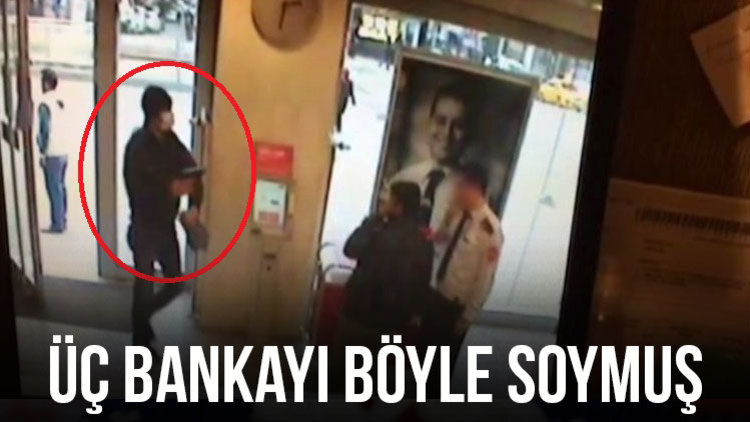 İstanbul'da üzerine yerleştirdiği düzenekle kendisine canlı bomba süsü vererek 3 bankayı soyan şüpheli, önce güvenlik kamerasına ardından da polise yakalandı. 32 yaşındaki M.Y., Bayrampaşa, Sultangazi ve Eyüp'te toplam 383 bin liralık soygun gerçekleştirmişti.