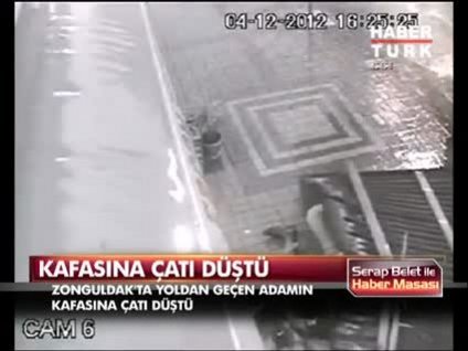 Kafasına çatı düşen adamın güvenlik kamerası görüntüleri