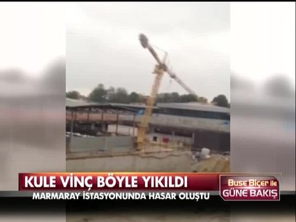 Marmaray ve metro çalışmaları için kurulan yaklaşık 35 metre yüksekliğindeki kule vinç, bölgedekilerin korku dolu bakışları arasında yıkıldı