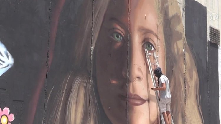Filistin, "cesur kızı" Ahed'in İsrail hapishanesinden çıkmasını bekliyor. Hatta Filistinliler kutlamalar için Ayrım Duvarı'na Ahed'in dev bir portresini çizdiriyor.