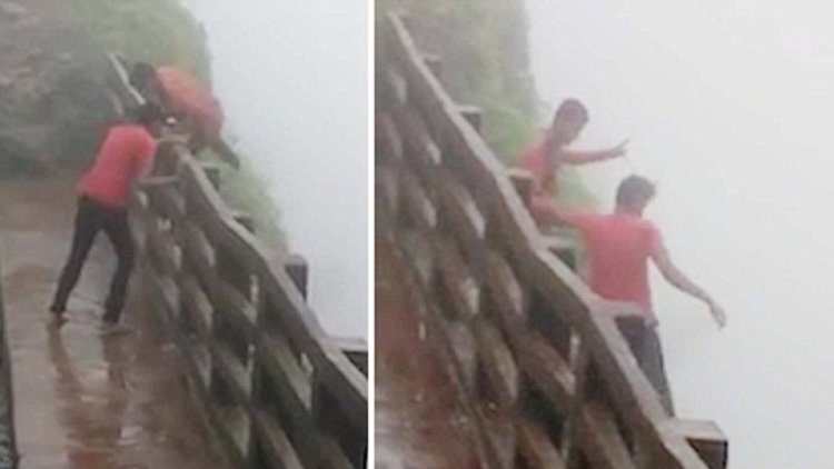 Hindistan'da Amboli şelalesini ziyaret eden iki turist 30 metre yükseklikteki uçurumdan düşürek hayatını kaybetti. Videoda şakalaşmak için çitleri aşan turistlerin son anları görülüyor. Görgü tanıkları hayatını kaybeden 25 yaşındaki Imran Gardi ve 21 yaşındaki Prasad Rathod'un alkollü olduklarını belirtti. (Daily Mail)