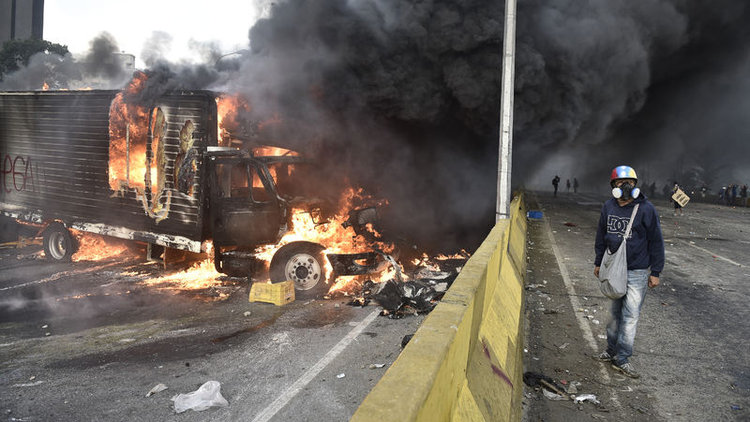Haftalardır hükümet karşıtı protestoların sürdüğü Venezuela'da halk yine sokaktaydı. Polis ile göstericiler arasındaki çatışmaların dozu arttı, sokaklar savaş alanınan döndü. Yüksek enflasyon altında ezilen halk; gıda, ilaç, süt gibi temel ihtiyaç ürünlerine ulaşmakta büyük güçlük çekiyor.