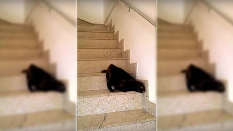 Bu videoyu izleyenler gözlerine inanamadı. İnternette dolaşan bu görüntüde bir siyah kedi merdivenlerden yılan gibi sürünerek iniyor. Kendini yılan zanneden kedinin videosu 22 binden fazla kez izlenerek viral oldu. İşte o anlar...