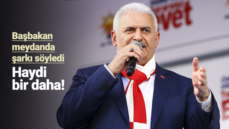 Başbakan Binali Yıldırım, referanduma 9 gün kala çalışmalarına Şırnak'ta devam etti. Toplu açılış töreninde vatandaşlara seslenen Yıldırım, AK Parti'nin seçim şarkısına eşlik etti. İşte Yıldırım'ın sesinden "Haydi Bir Daha"...