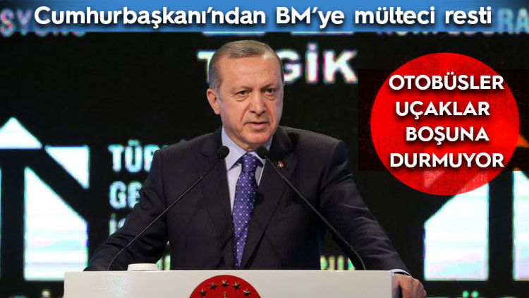 Cumhurbaşkanı Recep Tayyip Erdoğan, Türkiye Genç İş Adamları Konfederasyonu Genel Kurulu'na katıldı. Suriye krizi konusundaki tavrı nedeniyle Birleşmiş Milletler'i sert sözlerle eleştiren Erdoğan, "Bizim alnımızda 'enayi' yazmıyor kusura bakmayın. Bu işin hakkı neyse bunu yapın. Biz bir yere kadar sabır, sabır, sabır ondan sonra da gereği neyse bunu yaparız. Herhalde otobüsler, uçaklar boşuna durmuyor" dedi.