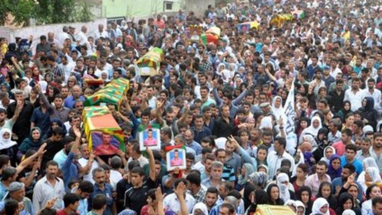 Cizre'de 8 günlük sokağa çıkma yasağı sırasında hayatını kaybeden 16 kişi için ilçede toplu cenaze töreni düzenlendi. Cenazeler gözyaşları arasında toprağa verildi.