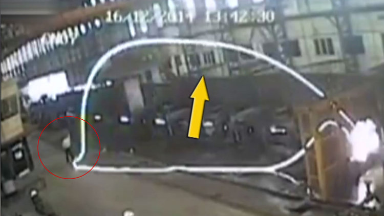 Demir çelik fabrikasındaki makinede oluşan arıza nedeniyle bin derece sıcaklıktaki kor çelik bir anda fışkırmaya başladı. Arızaya müdahale etmek isteyen mühendis yanmaktan son anda kurtuldu.