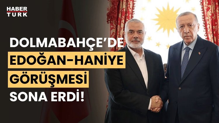 Cumhurbaşkanı Recep Tayyip Erdoğan, Hamas'ın siyasi lideri İsmail Haniye ile bir araya geldi. İstanbul Dolmabahçe'de 2,5 saat süren görüşmede, Gazze'de süren İsrail saldırıları, ateşkes çabaları ve insani yardımlar masadaki önemli başlıklar arasında yer aldı. Cumhurbaşkanı Erdoğan görüşmede, Türkiye'nin her zeminde Gazze'deki katliamları anlatacağını ifade etti. İsrail ile İran arasındaki gerilime de değinen Cumhurbaşkanı Erdoğan, Batı’da İsrail’in saldırılarını sorgulayan havanın dağılmaması için dikkatleri yeniden Gazze’ye çekecek çalışmalar yapılmasının önemini vurguladı.