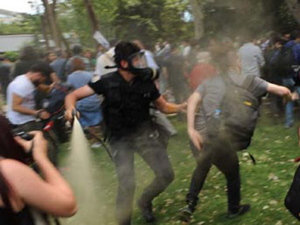 Taksim Gezi Parkı'nda 3 gündür devam eden eylemde polis, göstericilere biber gazı ve tazyikli suyla müdahale etti