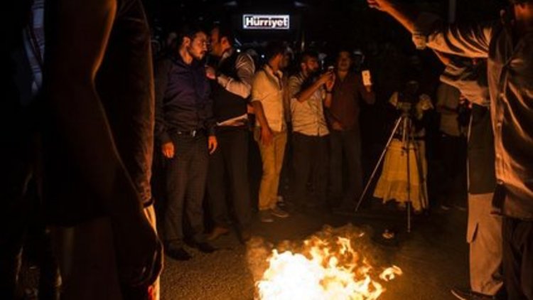 Cumhurbaşkanı Erdoğan'ın 400 milletvekili açıklamasının çarpıtılarak haberleştirildiğini iddia eden bir grup hürriyet gazetesine taşlı saldırı düzenledi.