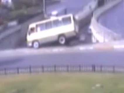 İstanbul Güngören'de aşırı hızlı olduğu öğrenilen bir yolcu minibüsü köprüden aşağıya uçtu. Feci kazada ortalık ana baba gününe döndü. Minibüs yolcularından 2 kişi hayatını kaybetti. Minibüsün kaza anı kameralar tarafından böyle görüntülendi