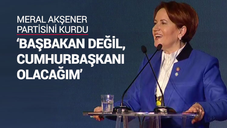 Milletin demokratik siyasetten sapmadan Türkiye'nin önünü açmaya karar verdiğinin altını çizen Akşener, "Binlerce yıllık iyilik medeniyetinin yolcuları olarak, bugün burada millet adına üstlendiğimiz görevi ilan etmek için toplanmış bulunmaktayız. Umutlarımız var. Hayallerimiz var. Zengin bir Türkiye istiyoruz, gücümüz var. Adil bir Türkiye istiyoruz, gücümüz var. Özgür bir toplum istiyoruz, gücümüz var. Mutlu bir Türkiye istiyoruz, hakkımız var. Yeni bir siyasal hareketle, iyi bir siyasal hareketle Türkiye kucaklaşmasını başlatıyoruz. Allah vatana, millete, insanlığa hayırlı etsin." dedi.