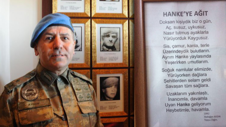 İşte şehit Tümgeneral Aydoğan Aydın'ın üsteğmenken kaleme aldığı "Hanke'ye Ağıt" isimli şiirin hikâyesi... Aydoğan Aydın 1992 yılında topçu üsteğmen olarak görev yaptığı yıllarda yazmıştı o şiiri, yazarken de yanında korucu İdris Babat vardı.