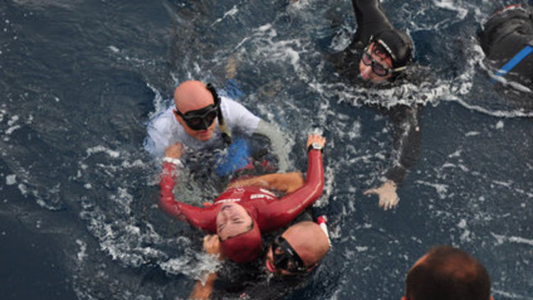 Serbest dalış dünya rekortmeni Şahika Ercümen yüzeye birkaç metre kala fenalaşınca acil durum protokolü uygulanarak tekneye alındı.
