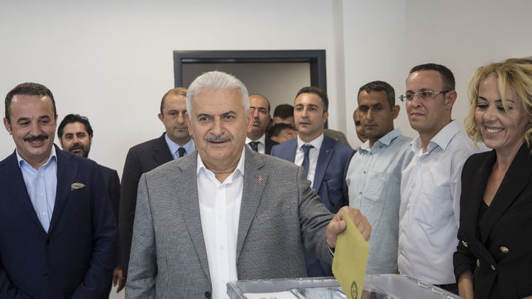 Başbakan Binali Yıldırım, oyunu İzmir'in Karabağlar ilçesinde, çocukları tarafından annesi Bahar Yıldırım adına yaptırılan ilkokulda kullandı.