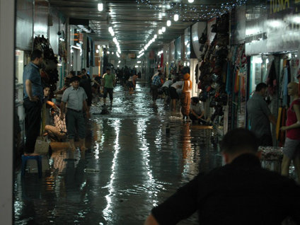 Van'da aniden etkisini gösteren sağanak nedeniyle Hastane Caddesi Beşyol Mevkisi'ndeki rögarlar patladı. Yeraltı Çarşısı'nın içine dolan sular çok sayıda esnafı mağdur etti