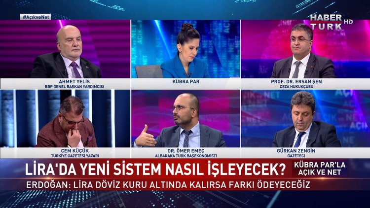 "20 Aralık'tan önce bir döviz tevdiat hesabınız vardı. Kapattınız. Bunu kapsamıyor. 20 Aralık itibariyle bankalarda olan dolar, euro, sterlin cinsinden mevduat hesabınızın olmasından bahsediyor" Açık ve Net'te Kübra Par sordu; Albaraka Türk Başekonomisti Dr. Ömer Emeç, MB'den TL desteği açıklamasını yorumladı