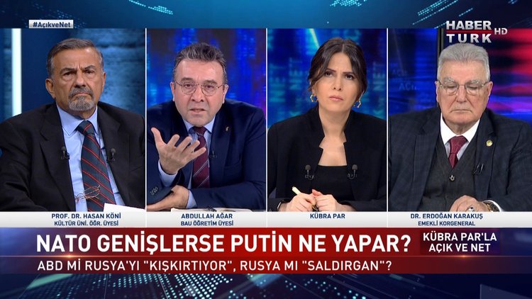 Açık ve Net'te Kübra Par sordu... Konukları; Emekli Korgeneral Dr. Erdoğan Karakuş, İstanbul Üniversitesi Öğretim Üyesi Prof. Dr. İlyas Topsakal, Kültür Üniversitesi Öğretim Üyesi Prof. Dr. Hasan Köni, Bahçeşehir Üniversitesi Öğretim Üyesi Abdullah Ağar ve Gazeteci Gürkan Zengin yanıtladı.