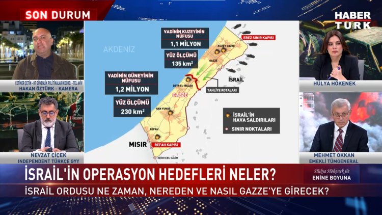Batı Şeria'da neler yaşanıyor? Kudüs'te bugün neler yaşandı? Hamas'ın çağrısı nasıl karşılık buldu? İsrail ordusu ne zaman, nereden ve nasıl Gazze'ye girecek? Operasyon sınırlı mı olacak? İsrail-Gazze hattında son durum ne? Gazze'ye kara harekatı başlayacak mı? İsrail'de operasyona bakış ne? Savaşın boyutu genişliyor mu? Gazzelilerin kaderi ne olacak? Gazze'ye neden yardım ulaşamıyor? Refah kapısında başka hesap mı var? ABD "Kara Operasyonu Yapma" mı dedi? Gazze'ye operasyon başarılı olur mu? Orta Doğu'da harita değişir mi? Savaş Orta Doğu'yu saracak mı, 3. Dünya Savaşı kapıda mı? Hamas'ın savunma planı ne olacak? Harekat olursa başarı oranı ne olur?