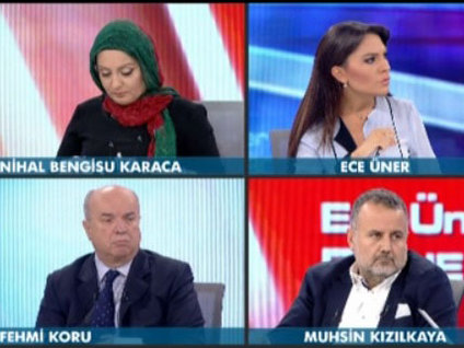 Ece Üner'de bu hafta Fehmi Koru, Nihal Bengisu Karaca, Muhsin Kızılkaya, Ruşen Çakır ve Abdulhamit Bilici IŞİD'in Kobani'ye saldırmasıyla Türkiye'ye gelen Kürtler ve bu gelişmelerin çözüm sürecini konuştu