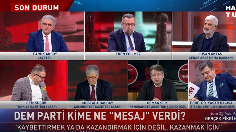 Yeniden Refah Partisi'nin etkisi olur mu olmaz mı? YRP etkisi olur mu olmaz mı? Fatih Erbakan'ın partisi seçimleri nasıl etkileyecek? DEM Parti adayları Murat Kurum ve Ekrem İmamoğlu'nu nasıl etkiler? "Jest" mi "Rest" mi? DEM Parti kime ne "Mesaj" verdi? DEM Parti İBB adayları ne yapar? Başak Demirtaş'ı ne vazgeçirdi? DEM Parti oyları kilit mi değil mi? Meral Danış Beştaş İstanbul denklemini etkiler mi? 2023 tercihleri 2024'te değişir mi? Yeni illeri kimler kazanabilir, kimler sürpriz yapar? Oyun planları değişti mi?