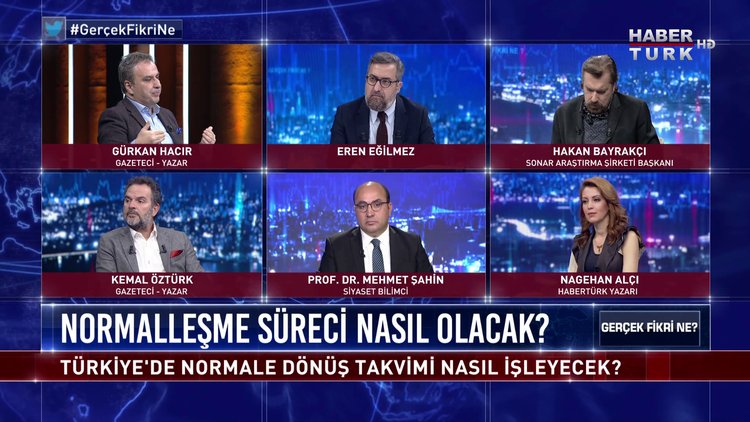 Eren Eğilmez soruyor; Habertürk Yazarı Nagehan Alçı, Siyaset Bilimci Prof. Dr. Mehmet Şahin, SONAR Araştırma Şirketi Başkanı Hakan Bayrakçı, Gazeteci - Yazar Kemal Öztürk ve Gürkan Hacır Gerçek Fikri Ne’de yorumluyor.