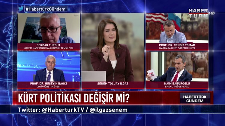 Habertürk Gündem'de Senem Toluay Ilgaz'ın konukları emekli Tuğgeneral Dr. Naim Babüroğlu, ODTÜ Uluslararası İlişkiler Bölüm Başkanı Prof. Dr. Hüseyin Bağcı, Marmara Üniversitesi Ortadoğu Araştırmaları Enstitüsü Öğretim Üyesi Prof. Dr. Cengiz Tomar ile ABD'nin Kürt kuşağı politikası, ABD-Rusya gerilimi konuları ele alındı.