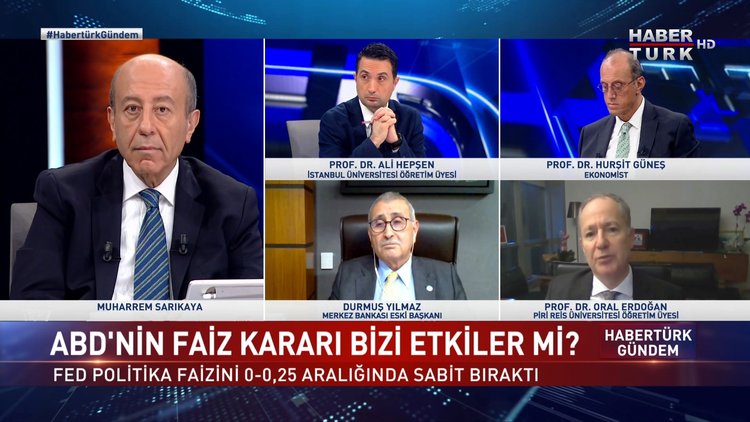 Habertürk Gündem’de Muharrem Sarıkaya soruyor… Konukları; İstanbul Üniversitesi Öğretim Üyesi Prof. Dr. Ali Hepşen, Ekonomist Prof. Dr. Hurşit Güneş, Merkez Bankası Eski Başkanı Durmuş Yılmaz ve Piri Reis Üniversitesi Öğretim Üyesi Prof. Dr. Oral Erdoğan yanıtlıyor.