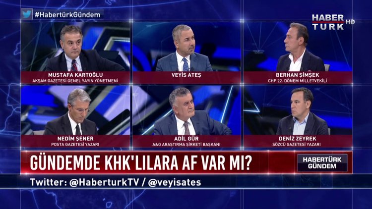 Veyis Ateş soruyor, CHP 22. Dönem Milletvekili Berhan Şimşek, Gazeteciler Mustafa Kartoğlu, Deniz Zeyrek, Nedim Şener ve Kamuoyu Araştırmacısı Adil Gür Habertürk Gündem’de yanıtlıyor.