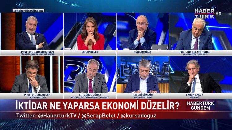 Habertürk Gündem’de Serap Belet ve Kürşad Oğuz soruyor… Konukları; İYİ Parti Genel Başkan Yardımcısı Prof. Dr. Bahadır Erdem, Akademisyen/ Hukukçu Prof. Dr. Selami Kuran, Ceza Hukukçusu Prof. Dr. Ersan Şen, Eski Kültür Turizm Bakanı Ertuğrul Günay, Habertürk Yazarı Nasuhi Güngör ve Gazeteci Faruk Aksoy yanıtlıyor.