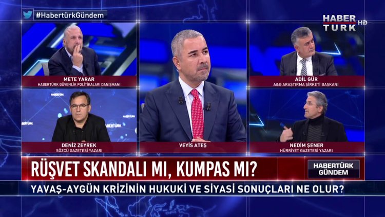 CHP'deki Mansur Yavaş-Sinan Aygün gerilimi, Kanal İstanbul tartışması, Libya'ya asker gönderme hamlesi ve ABD'nin yaptırım kararları... Siyasette önümüzdeki dönemde neler yaşanacak, kulislerde neler konuşuluyor? Veyis Ateş soruyor, Gazeteciler Deniz Zeyrek, Nedim Şener; Habertürk Güvenlik Politikaları Danışmanı Mete Yarar ve Kamuoyu Araştırmacısı Adil Gür Habertürk Gündem'de yanıtlıyor.