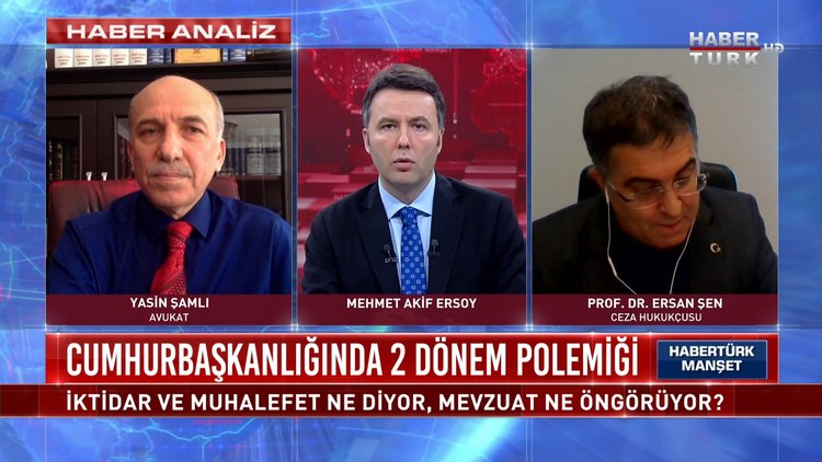 İki dönem tartışmaları ve yeni sistem... Anayasa Cumhurbaşkanlığı adaylığını nasıl düzenliyor? İki dönem tartışmasında kim ne diyor? İktidar ve muhalefet ne diyor, mevzuat ne öngörüyor? Yüzde 50 + 1 barajı düşürülür mü? Habertürk Manşet'te Mehmet Akif Ersoy, Hukukçular Prof. Dr. Ersan Şen, Avukat Yasin Şamlı, Dr. Rezan Epözdemir ve Dr. Ruşen Gültekin ile konuştu.