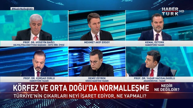 Nedir Ne Değildir’de Mehmet Akif Ersoy soruyor… Konukları; Dış Politika Enstitüsü Başkanı Prof. Dr. Hüseyin Bağcı, Habertürk Yazarı Kemal Öztürk, Habertürk Yazarı Prof. Dr. Kürşad Zorlu, Sözcü Gazetesi Yazarı Deniz Zeyrek ve Akademisyen Yazar Prof. Dr. Yaşar Hacısalihoğlu yanıtlıyor.