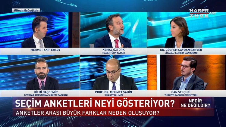 Nedir Ne Değildir’de Mehmet Akif Ersoy soruyor… konukları; Habertürk Yazarı Kemal Öztürk, Siyasal İletişim Danışmanı Dr. Gülfem Saydan Sanver, Optimar Araştırma Şirketi Başkanı Hilmi Daşdemir, Siyaset Bilimci Prof. Dr. Mehmet Şahin ve Türkiye Raporu Direktörü Can Selçuki yanıtladı.