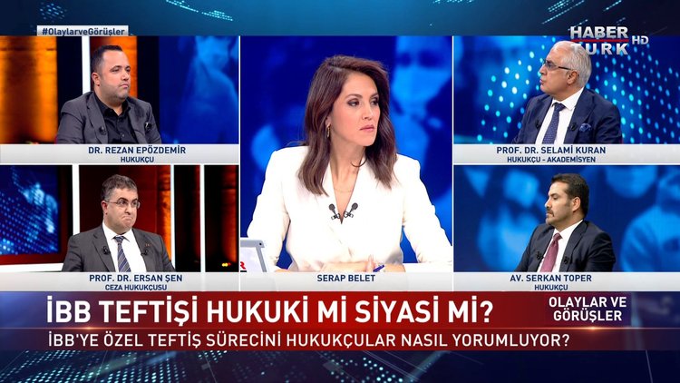 Olaylar ve Görüşler’de Serap Belet soruyor… Konukları, Hukukçu-Akademisyen Prof. Dr. Selami Kuran, Hukukçu Dr. Rezan Epözdemir, Ceza Hukukçusu Prof. Dr. Ersan Şen ve Hukukçu Av. Serkan Toper yanıtlıyor.