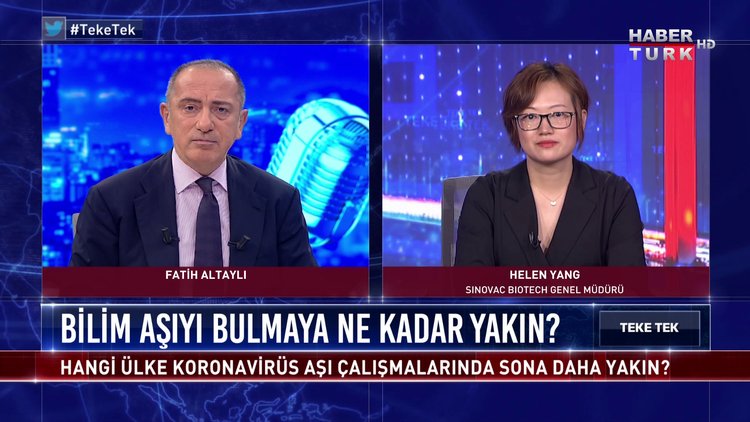 Fatih Altaylı soruyor; Sinovac Biotech Genel Müdürü Helen Yang Teke Tek'in ilk bölümünde yanıtlıyor.