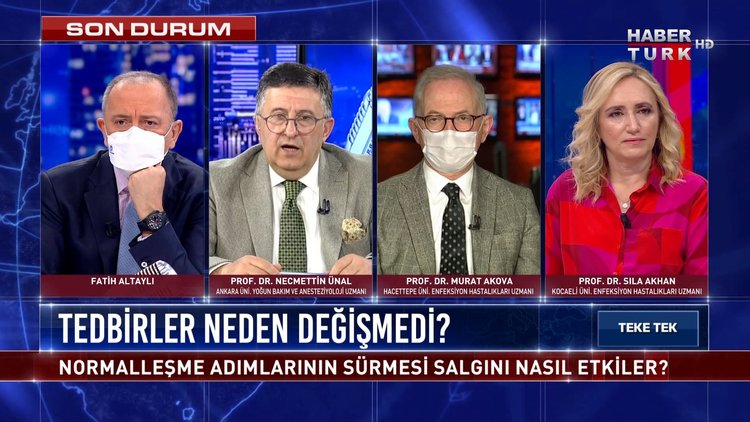 Fatih Altaylı soruyor; Enfeksiyon Hastalıkları ve Klinik Mikrobiyoloji Uzmanı Prof. Dr. Murat Akova, Yoğun Bakım-Anesteziyoloji Uzmanı Prof. Dr. Necmettin Ünal ve Enfeksiyon Hastalıkları Uzmanı Prof. Dr. Sıla Akhan Teke Tek’te yanıtlıyor.