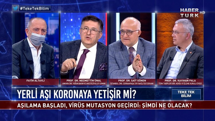 Fatih Altaylı soruyor; TTB Kovid-19 İzleme Kurulu Üyesi Prof. Dr. Kayıhan Pala İstanbul Üniversitesi Cerrahpaşa Tıp Fakültesi Dekanı Prof. Dr. Sait Gönen ve Yoğun Bakım-Anesteziyoloji Uzmanı Prof. Dr. Necmettin Ünal Teke Tek Bilim’de yanıtlıyor