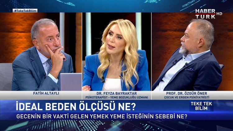 Gece neden aniden acıkırız? İdeal beden ölçüsü ne? Yeme düzenimiz nasıl olmalı? Kaygı bozukluğunda ailenin rolü ne? Beden olumlama ne demek? Fatih Altaylı soruyor… Konukları: Psikoterapist - Yeme Bozukluğu Uzmanı Dr. Feyza Bayraktar ile Çocuk ve Ergen Psikiyatristi Prof. Dr. Özgür Öner yanıtlıyor.