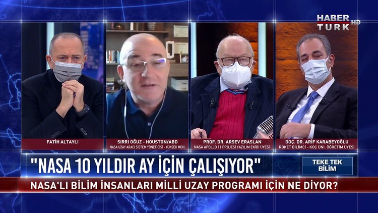 Fatih Altaylı soruyor; Nasa Uzay Aracı Sistem Yöneticisi, Yüksek Mühendis Sırri Oğuz, Nasa Apollo 11 Projesi Yazılım Ekibi Üyesi Prof. Dr. Arsev Eraslan ve Roket Bilimci-Akademisyen Doç. Dr. Arif Karabeyoğlu Teke Tek Bilim’de yanıtlıyor.