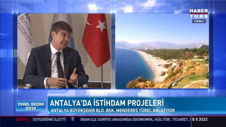 2019 yerel seçimlerine doğru Antalya Büyükşehir Belediye Başkanı Menderes Türel, Türkiye'nin turizm merkezi Antalya'daki yatırımları ve yeni projeleri tüm yönleriyle Yerel Seçim 2019'da Esra Boğazlıyan'a değerlendiriyor.