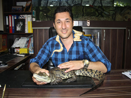 Bursalı bir işadamı ofisini Afrika'daki 'Serengeti Milli Parkı'na çevirdi. 50 metrekarelik ofisinde timsah, piton yılanı ve tarantula cinsi örümcek besleyen hayvansever, masasının üzerinde gezen vahşi hayvanlara rağmen rahatlıkla çayını içiyor