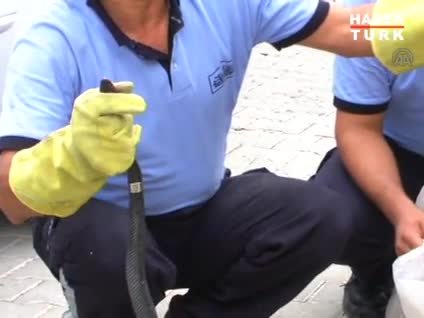 Adana'nın Kozan İlçesi'nde bir eve bir buçuk metre uzunluğunda yılan girdi. İtfaiye ekiplerinin yardımıyla yakalanan yılanın gövdesine ise uzun süredir ev sahiplerinin aradığı yüzük takılmıştı