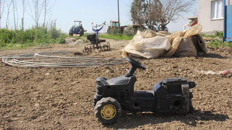Traktörle tarla sürerken 2 yaşındaki kuzeninin üzerinden geçti. Küçük çocuğun ölümüne neden oldu. Olay, Adana'nın Karataş ilçesine bağlı Çimenli Mahallesi'nde yaşandı. Arazisinin bir bölümünü sera yapan 22 yaşındaki Abüzer Şahin, traktörle toprağı sürmeye başladı. Oyuncak arabasıyla civarda oynayan kuzeni 2 yaşındaki Hasan Ali Şahin de bir süre tarlada oynayıp uyuyakaldı. Şahin, tarlayı sürmeye devam ederken onu görmeyerek, küçük çocuğun üzerinden geçti. Durumu gören çevredekiler hemen Şahin'i uyardı. Ambulans ile hastaneye kaldırılan küçük çocuk, yapılan tüm müdahalelere rağmen kurtarılamadı. Jandarma, Abüzer Şahin'i gözaltına aldı. Küçük çocuğun öldüğünü duyan yakınları ise hastane bahçesinde sinir krizi geçirdi. Olayla ilgili soruşturma başlatıldı.