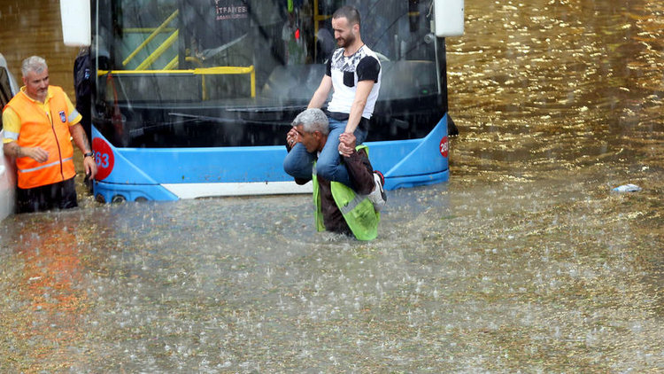 Ankara'da 15.30'da başlayan gök gürültülü sağanak ve dolu nedeniyle Çankaya ilçesindeki alt geçit ve tünellerde vatandaşlar otomobillerin içinde ve toplu taşıma araçlarında mahsur kaldı.