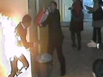 Bitlis’in Ahlat ilçesinde Çok Programlı Lise'nin bahçesindeki yangın tatbikatı sırasında tiner tenekesinin patlaması sonucu ağır yaralanan Onur Zeki Akgün’ün yanma anı güvenlik kameralarına yansıdı